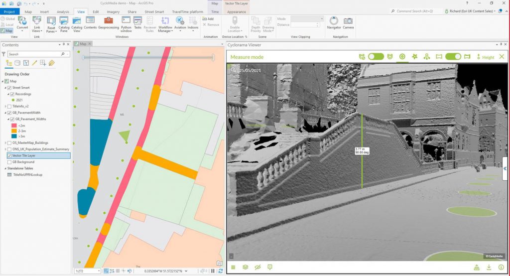 Provided by Esri UK partner Cyclomedia, the new imagery and associated LiDAR data provides a ‘full 3D digital representation’ of the environment and can be viewed simultaneously alongside other geospatial data within the Esri GIS, such as street furniture, council tax records, planning applications and Ordnance Survey data.